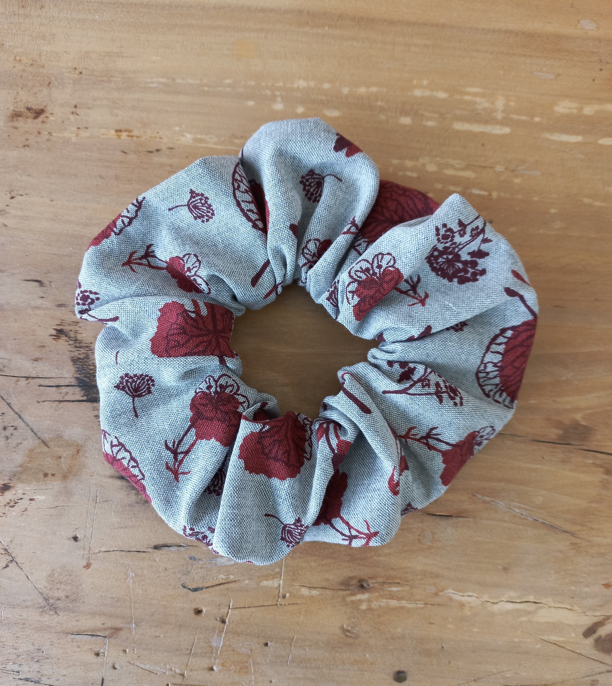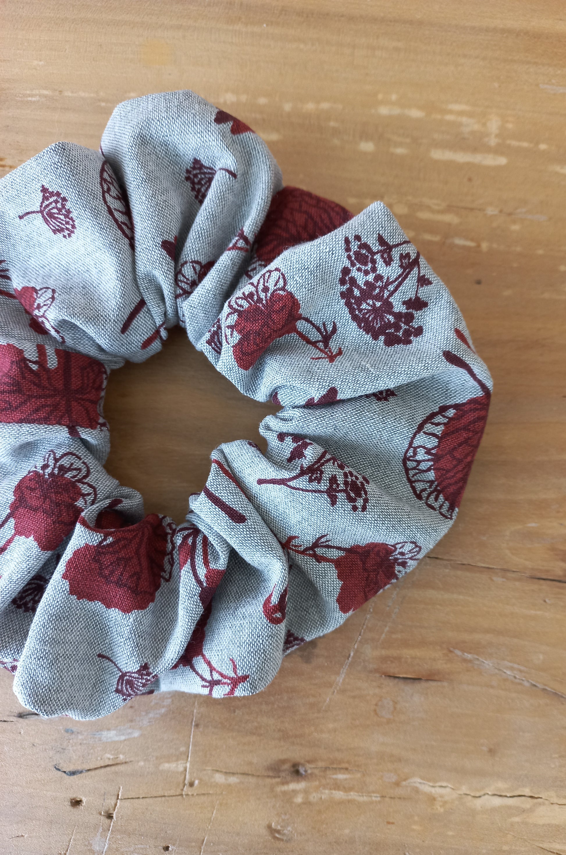 Tissu coton fond coloris gris chiné imprimé motifs fleurs stylisées coloris bordeaux avec élastique